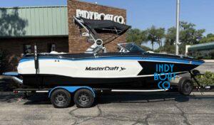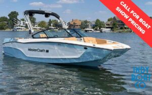 Flagship performance and luxury unite in the 2019 MasterCraft XStar. Driven by the powerful Ilmor 6.2 engine, this 23′ masterpiece boasts a massive 4,100-lb ballast system, delivering endless, powerful waves at the touch of a button. With a spacious 102″ beam and seating for up to 16, the XStar offers plush, heated seats and refined ergonomics, ensuring every ride is as comfortable as it is thrilling.