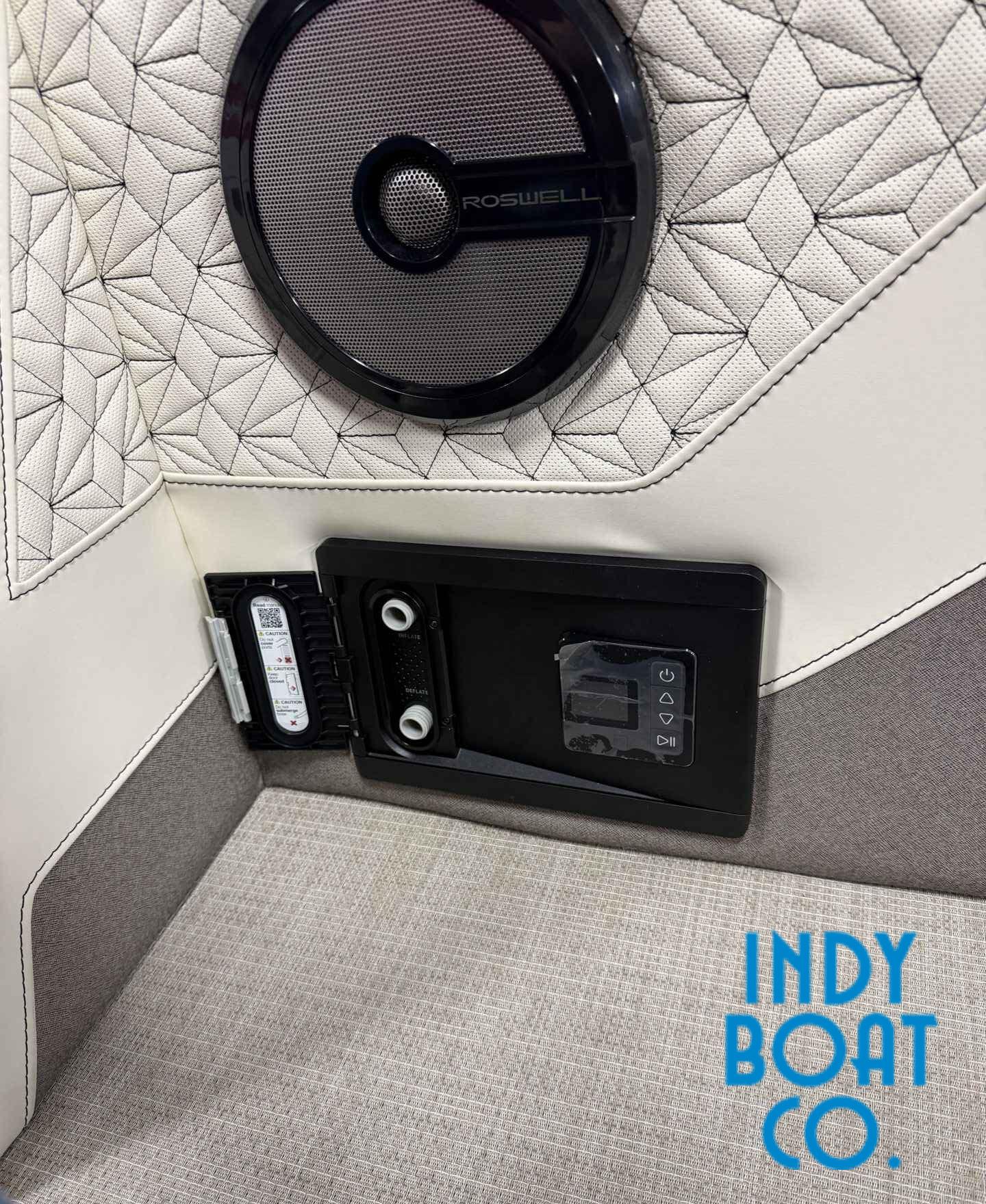 Alera is creating a new standard for boating and their flagship watercraft is the perfect example. Built with precision for speed, style, and space, the M23Q has everything you need and more for a day on the water. With a Roswell premium audio system, ultra plush vinyl seating, and ultrawide Simrad display, Alera has thought of everything. Plus with an inflate/deflate station and built in trash station, the details make a difference. Equipped with a 250 hp Mercury engine.